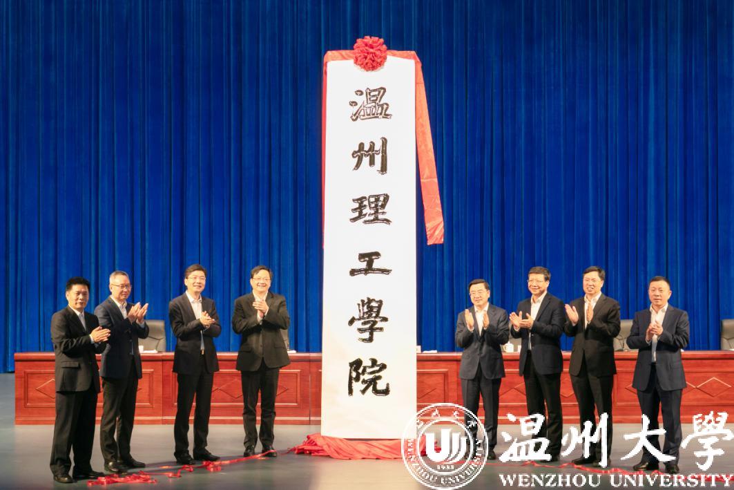 4月21日,温州理工学院举行揭牌仪式。省委常委、市委书记陈伟俊,省委组织部副部长、省公务员局局长胡旭阳,省教育厅党委书记、厅长陈根芳,市委副书记、市长姚高员,温州市委常委、组织部部长杨胜杰,温州市人民政府副市长娄绍光,成人视频 党委书记谢树华,温州理工学院党委副书记、院长周文龙等一同为温州理工学院揭牌。