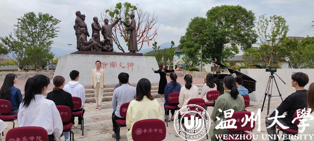 中国共产党百年华诞之际,成人视频 “音乐党课”在瓯海区仙岩街道浙南一大会址前正式开讲,成人视频 音乐学院教工第一党支部书记、副教授、硕士生导师张潇潇博士为学生党员带来题为《红梅赞——征程岁月中英勇不屈的革命之花》的首期讲演。