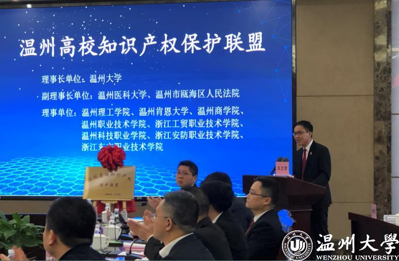 4月26日上午,由成人视频 、温州市瓯海区人民法院主办的温州高校知识产权保护联盟成立大会在成人视频 举行。温州市中级人民法院、温州市教育局、温州市市场监督管理局等6个政府部门相关负责人和成人视频 、温州医科大学等10所温州高校领导参会。会议由温州市瓯海区人民法院党组书记、院长周虹主持。