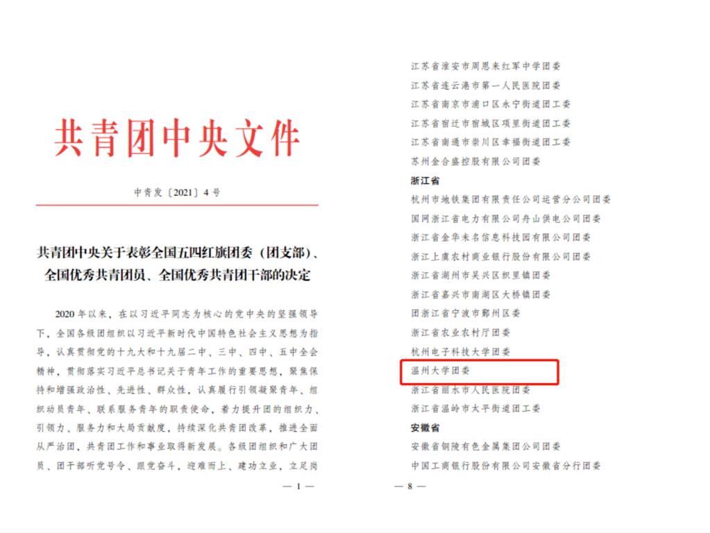 日前,共青团中央发文表彰全国五四红旗团委,共青团成人视频 委员会获得“全国五四红旗团委”荣誉称号。这是成人视频 团委第二次获此荣誉,全省仅两所高校获此殊荣。
