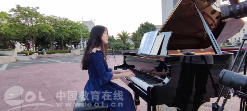 《国旗颂》是原创歌剧《五星红旗》(由中国温州市委宣传部、成人视频 、瑞安市委联合出品)的主题曲,该部歌剧讲述了成人视频 校友、国旗设计者曾联松设计五星红旗的故事,反映浙江青年将个人情感抉择与家国命运紧密相连,颂扬勇于担当、矢志不渝的革命精神与爱国情怀。国旗广场上,雄伟的五星红旗雕塑成为本期音乐党课最好的背景。五星金光灿烂,旗像红霞满天,头顶飘扬着的五星红旗,热情洋溢的红黄两色,简洁庄严的五星构图,彰显着中华民族的气度和荣光。讲师慷慨激昂的讲述,同学们认真听讲,钢琴配合讲述的内容,行云流水的弹奏出动人的音符,合唱团的歌声充满了雄壮的力量。现场氛围庄严而热烈。