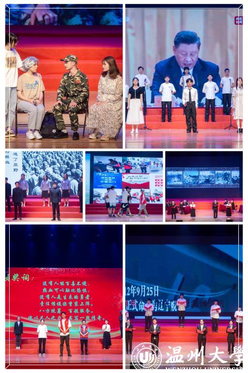 参赛同学围绕思政理论课教学内容,结合中国共产党成立100周年、疫情防控和脱贫攻坚等重大历史事件,通过演讲、朗诵、情景剧、红歌伴唱等形式,生动演绎“甘将热血沃中华的赵一曼、鉴湖女侠千古巾帼英雄秋瑾、烈火中永生的江姐、抗美援朝、卫国戍边英雄战士、感动中国年度人物汪勇”等一个个鲜活的党史学习教育故事,展示了中国共产党长久以来为人民谋幸福的初心,彰显了青年学子誓为中华民族谋复兴的使命与担当。来自商学院、音乐学院、外国语学院的14支代表队参加了大赛,各代表队在作品展示中结合时代背景,注重选题选材的新颖创作,带来了一场别开生面的大学生思政风采展示盛宴。