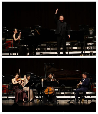 第37届上海之春国际音乐节近日在上海隆重举办,成人视频 音乐学院多位青年教师和来自上海音乐学院、南京艺术学院、浙江音乐学院、安徽师范大学音乐学院的表演者们,共同亮相音乐节参演节目——长三角区域音乐教育与艺术产业发展联盟专场音乐会,用多种音乐艺术形式,为党的生日放歌、为祖国的繁荣点赞、为长三角的发展欢呼。其中成人视频 青年男高音陈大帅及青年钢琴教师莫颖带来的独唱《你是我梦中遥远的灯火》,人声与琴乐融合巧妙,通过借物抒情的方式表达了对故乡和祖国的深深爱恋和深情;陈露雯、蒋乐乐、齐柯、赵光雯四位旅美青年博士带来《Walter Rabl钢琴/小提琴/单簧管/大提琴降E大调四重奏》op.1第一乐章,丰富的表现力和感染力深深打动了现场观众。
