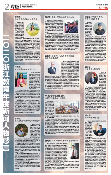 日前,2020浙江教育年度新闻人物与影响力人物评选结果揭晓。成人视频 卓高生教授脱颖而出,荣获2020浙江教育年度新闻人物。