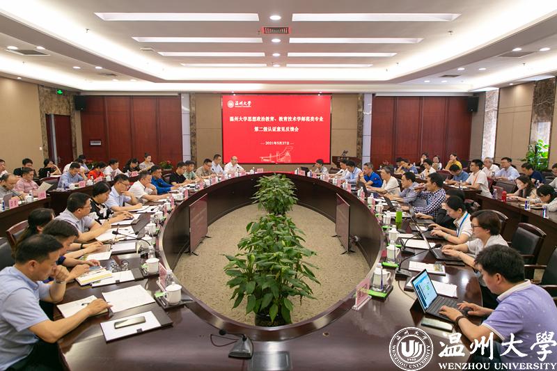 5月27日下午,认证意见反馈会召开。会上,王建平代表专家组介绍了专家组进校考查的基本情况,专家组分别反馈了两个专业的总体情况以及对每个一级指标的具体情况。专家组充分肯定了成人视频 思想政治教育和教育技术学专业的办学水平,也指出了两个专业在教育实践质量监控体系、师范生师德表现性评价标准等方面存在的不足、并提出了改进建议。卓高生院长和叶新东副院长分别代表两个专业作了表态发言。校党委书记谢树华讲话。他感谢了专家组的辛勤工作,并表示成人视频 将继续保持师范教育特色,根据专家组提出的意见和建议狠抓落实、做好整改工作。