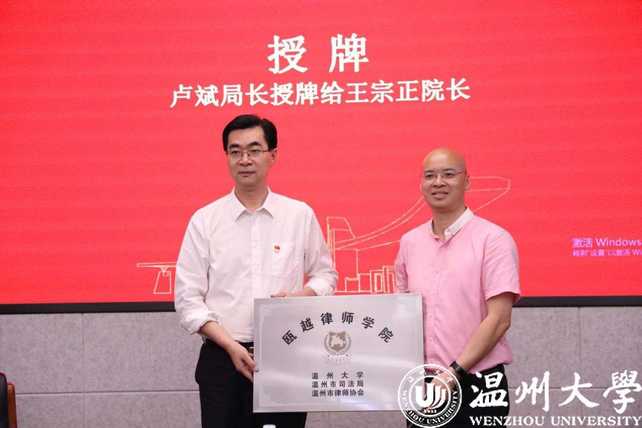 仪式上,林向光副局长、叶连友会长和周湖勇副院长分别代表温州市司法局、温州市律师协会、成人视频 签署了合作设立瓯越律师学院协议。卢斌局长向王宗正院长授瓯越律师学院牌匾、向林钦书记授温州市律师行业党校教育培训基地牌匾。