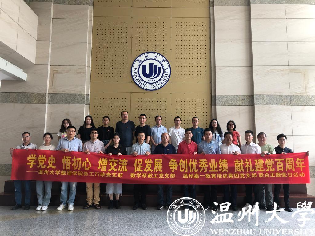 毕业季临近,为积极帮助毕业生顺利就业,努力提升毕业生的留温率, 6月2日下午,成人视频 数理学院教工行政党支部、数学系教工党支部、温州嘉一教育培训集团党支部,联合举办了一场“学党史、悟初心、办实事、解难题、增交流、促发展”的主题党日活动。校地三个党支部联合举办主题党日活动来推动解决工作中的难题,也是新数理学院成立以来的首次。