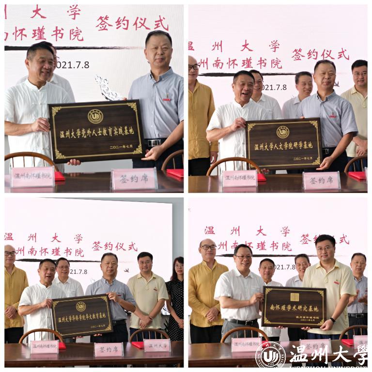 会上,统战部负责人代表成人视频 与温州南怀瑾书院签订战略合作协议,形成长效合作机制。授牌成立成人视频 党外人士教育基地、人文学院研学基地,华侨学院华文教育基地和南怀瑾学术研究基地。