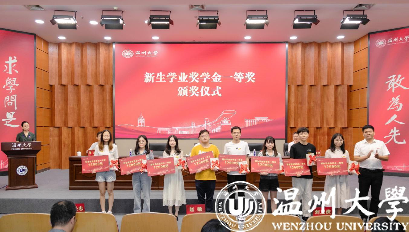 庄兴忠为获得研究生新生一等学业奖学金的17名新生代表颁奖,并为新生赠送校长签名书籍《万古江河》,勉励新生们感悟我国千年文化气质,从历史中汲取力量、传承过去、把握未来。