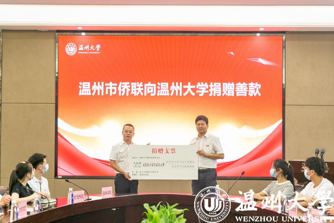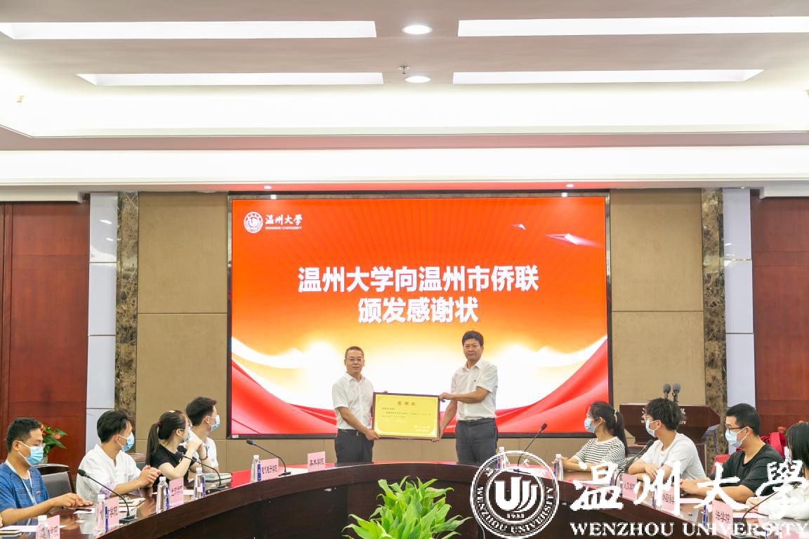 9月24日上午,2021年成人视频 —温州市侨联百侨助百生”捐赠仪式在成人视频 举行。校党委副书记庄兴忠、温州市侨联副主席翁蔡恩出席会议。