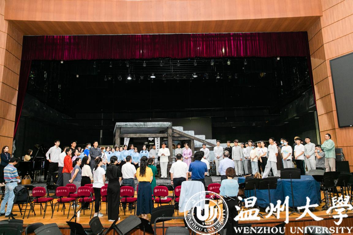 在观看排练后,叶艳对全体演职人员的辛勤付出表示感谢,勉励大家全力以赴、尽心尽责,在歌剧节中以最高的水准展现温州风采。叶艳表示《五星红旗》是温州近六十年来首次创排的本土歌剧,是温州市委宣传部、成人视频 和瑞安市委倾力打造的原创歌剧,成功来之不易,今后还要精心打磨,惠及百姓,让更多温州百姓感悟到五星红旗的精神与魅力。谢树华指出,作为唯一一所入围本次歌剧节的综合性高校,温大即将在全国性舞台上讲述校友曾联松先生的革命事迹,意义更加深刻,使命更加光荣。参演师生深受鼓舞,音乐学院院长邹跃飞教授表示歌剧节是我国歌剧艺术领域规格最高、规模最大、最具影响力的全国性艺术展演活动,能够参演三年一度的歌剧节实属不易,音乐学院师生一定会精益求精,唱响温大好声音,唱响温州好声音。