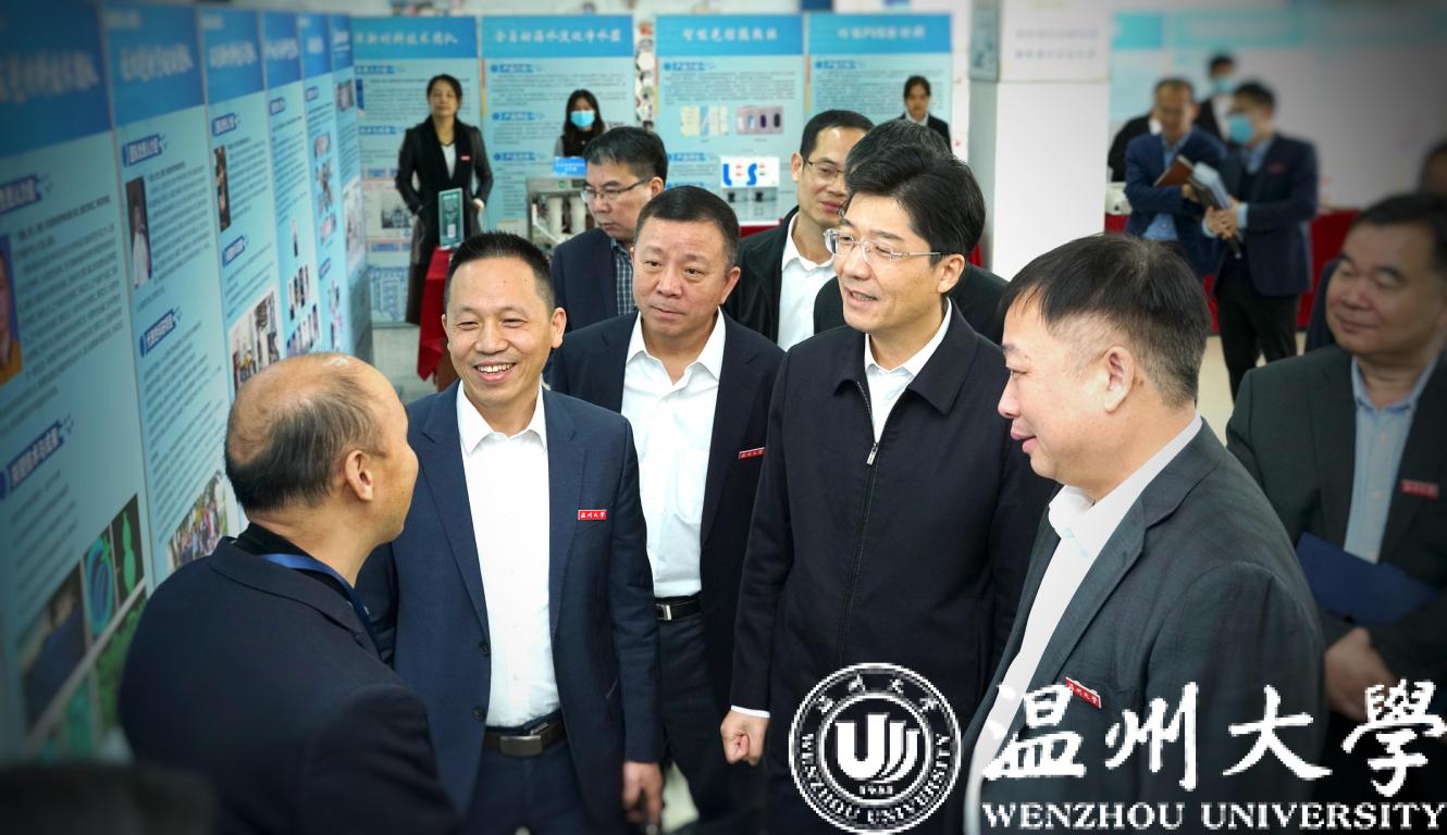 姚高员一行来到成人视频 大型仪器平台,了解平台及高精尖设备的运行情况;参观了学校自主研发的半导体级全氟醚橡胶、钠离子电池、新型环保笔头、特种激光材料与器件等系列产品,深入了解成人视频 科技成果服务温州产业发展的具体情况,并对科研团队负责人侴术雷、袁一斐、向卫东、丁益宏、王兆伦、金辉乐等高层次人才进行慰问。