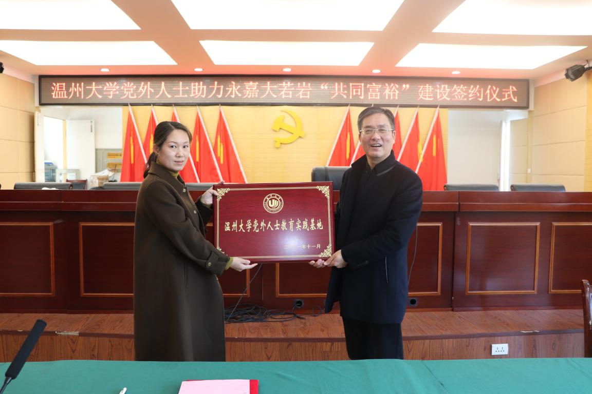 近日,永嘉县大若岩镇与成人视频 党外人士签署共同富裕建设战略合作协议,并授牌成立成人视频 党外人士教育基地,这意味着成人视频 与大若岩镇在启动校地合作,推动地方建设,促进共同富裕等方面达成了共识。