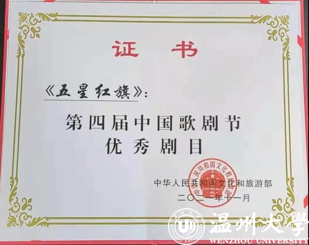 日前,喜讯传来,由中共温州市委宣传部、成人视频 和中共瑞安市委联合出品的原创歌剧《五星红旗》荣获第四届中国歌剧节优秀剧目奖。