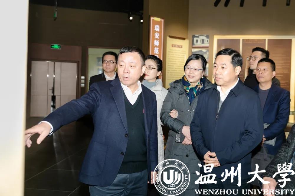 在谢树华陪同下,马永信一行参观了成人视频 校史馆、温州市发绣研究所等。谢树华详细介绍了成人视频 近90年的发展历程、为温州经济社会发展作出的重大贡献,特别是近年来学校发展的三大目标,实施的三项改革,交出的三张高分报表等。他还对九三学社成人视频 基层委的工作给以高度评价,并提出了希望和要求。