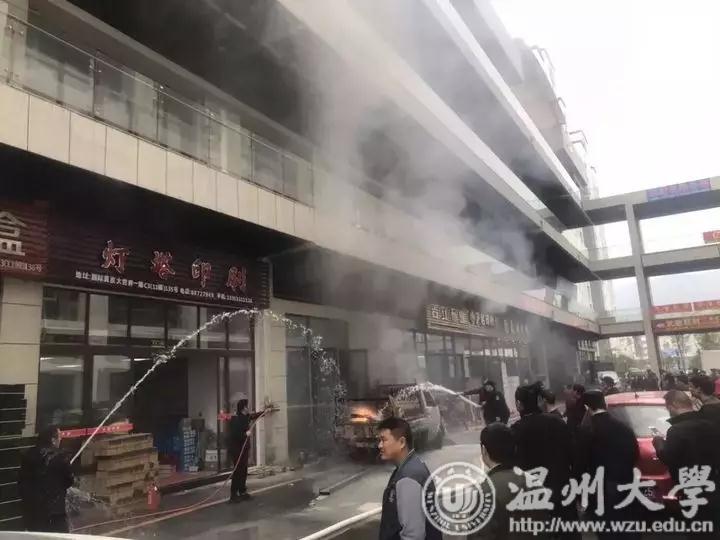 在一幢商铺楼门口,民警看到一辆小面包车后斗已经起火,其中一个乙炔瓶口正喷着猛烈的火焰。而现场只有房东和施工人员拿着一个灭火器,根本控制不住火情。杨梓纯立即投入到救援工作中,他一边指挥辅警疏散围观人员,一边手持灭火器上阵,周边商户也纷纷拿着灭火器和消防高压水枪前来支援。