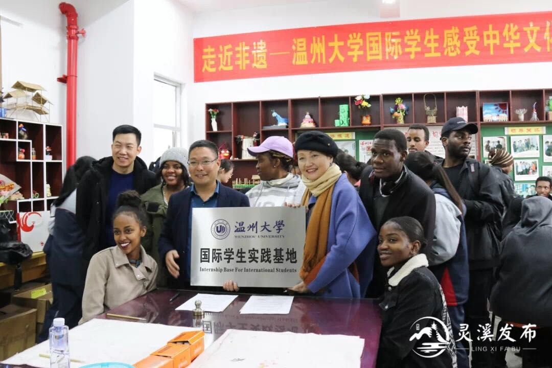 期间,活动还在灵溪民间艺术馆和苍南县民族中学举行了“成人视频 国际学生实践基地”授牌仪式。留学生们来到灵溪民间艺术馆和动车站广场分别参观剪纸工艺品和建筑,国家级“非遗”传承人吴明月老师为留学生们倾情表演了单档布袋戏,大家看的如痴如醉。