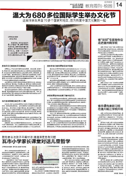 为丰富国际学生的校园生活,让国际学生深入体验中国传统文化,成人视频 国际教育学院为国际学生开展了丰富多彩的校内外活动,比如组织国际学生参观温州首届舞龙舞狮大赛、体验温州一家人的年夜饭、体验永嘉地域文化等。中国传统文化非遗剪纸课是国际教育学院特为国际学生开设的中国民俗艺术与实践系列课程之一,承担该课程教学的张丽丽副教授既是该学院的国际汉语教师,同时也是温州市瓯海区第二批非遗剪纸项目代表性传承人。今年11 月,国际教育学院携手温州华侨职业中等专业学校共同举办了国际学生烹饪培训班,25 名国际学生开始学习中国菜肴的刀工技巧、中式冷盘、传统面点及中式热菜做法,体会中华民族博大精深的饮食文化。此外,国际教育学院还与文成县政府、温州瓯瓷学院、温州市新田园小学、成人视频 城附属学校等单位建立国际学生实践基地,通过实践基地的建立进一步打造中外学生、中外文化交流的平台,为国际学生深入了解中国、知晓中国传统文化起到积极的促进作用。