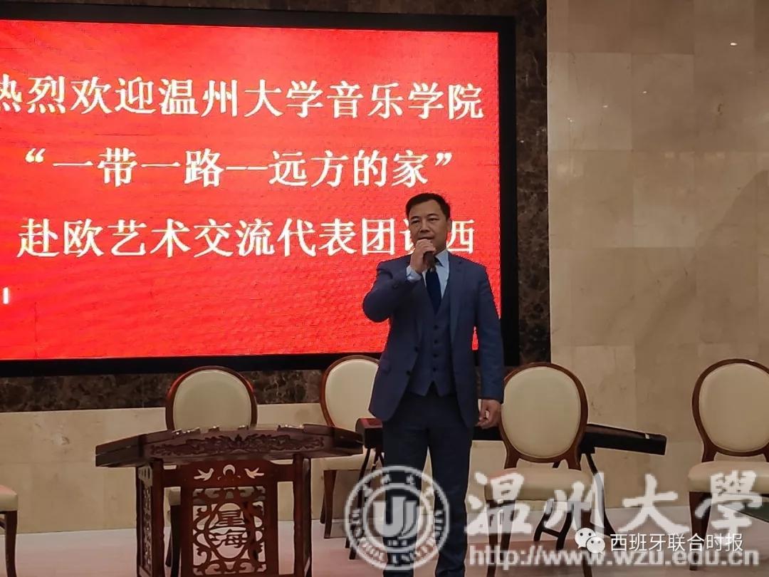 活动开始,西班牙华侨华人协会主席毛峰先生致辞。他对成人视频 艺术音乐学院艺术代表团来访献艺表示了诚挚的感谢,并向前来观看演出的侨胞表达了欢迎。毛峰主席表示希望以今天的这场表演作为契机,来更进一步地推动旅西侨界在弘扬推广中华文化。最后,毛峰主席祝愿本次活动圆满成功。
