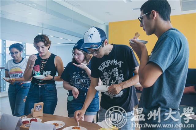 一轮试吃完,温肯同学们向美肯同学们介绍了中秋节和中秋节的特殊含义。