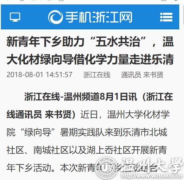 浙江在线-温州频道8月1日讯(浙江在线通讯员 来书贤)近日,成人视频 化材学院“绿向导”暑期实践队来到乐清市北城社区、南城社区以及湖上岙社区开展新青年下乡活动。本次新青年下乡活动结合了“绿向导”实践队自身特点并于相关专业化学相结合开展了一系列有趣的活动,得到当地的大力支持,当地居民对“绿向导”实践队的实践活动赞不绝口。