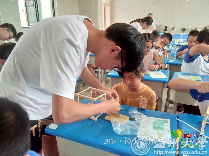 7月23日,成人视频 数电学院“夏天里的少年”暑期社会实践队为乐清盐盆春泥班学员们开了一堂新颖的科学实验课程――“探索牛顿摆和飞行原理”。从科学实验的原理出发,经过自己动手尝试制作模型,从中体会到科学带给人们的乐趣。