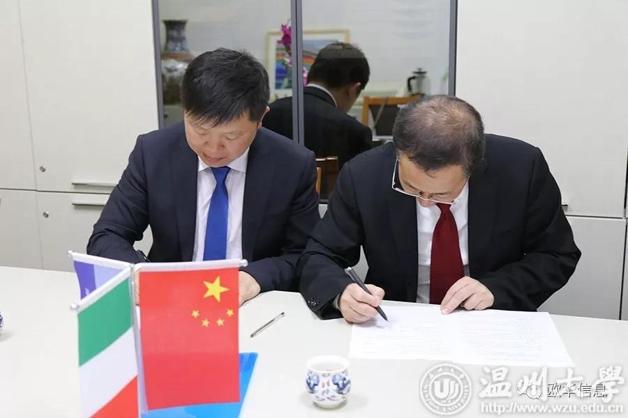 成人视频 意大利分校校长严晓鹏(右)与欧华信息网董事长徐策(左)签署协议
