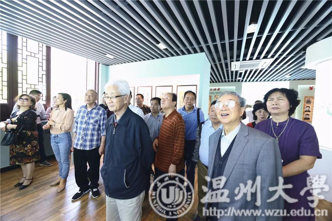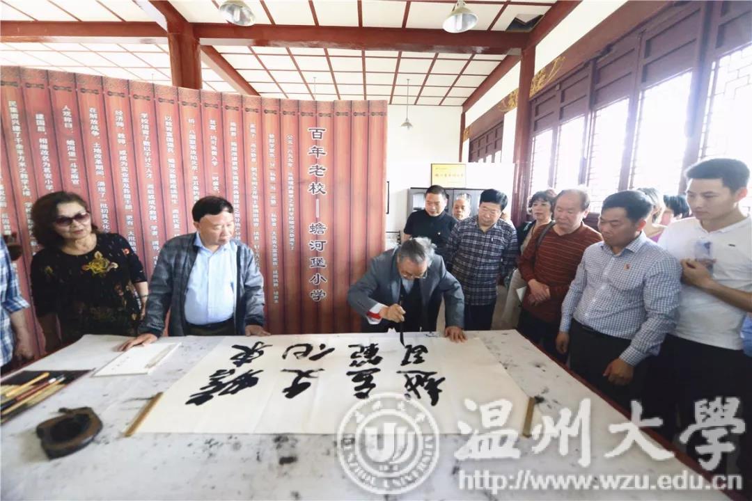 在蟾东文化礼堂三楼诗礼展厅内,该村本村人、乐清诗词学会会长施中旦向老干部们讲述该村诗礼渊源:亭台楼阁随处可见楹联牌匾,被省诗词与楹联学会授予“浙江省诗词之乡”,蟾河堡小学走过百年书香蕴藉……现场,一位老干部更即兴挥毫,写下“蟾东文化立范越瓯”几个大字。