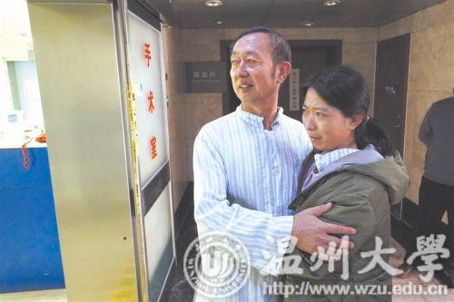 上午11时许,在一名医生引导下,亲友们簇拥着李国民来到手术室,父女俩在门口相拥而泣。