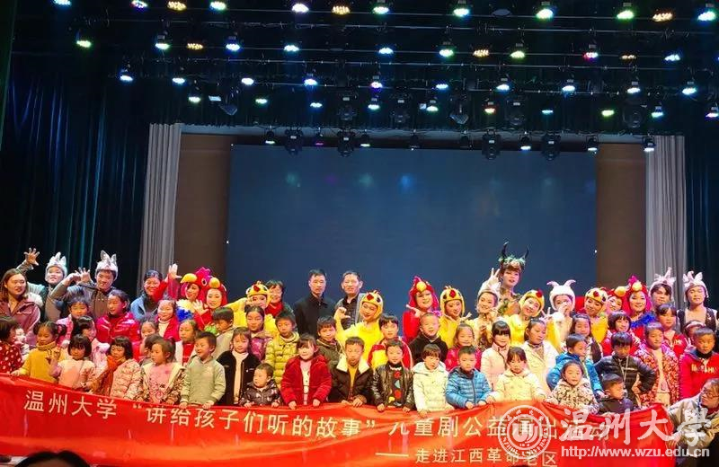 12月23日晚,成人视频 教师教育学院童欣儿童剧团远赴江西上饶开展公益演出,与上饶师范学院联合为当地革命老区的留守儿童送去“讲给孩子们听的故事”——一场自编自演的儿童戏剧《我不要被吃掉》,深深打动前来观看的近500名大小观众们,这也是成人视频 和上饶师院的师生们送给革命老区儿童最好的新年礼物。