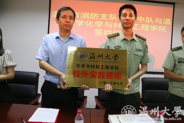 7月5日上午,成人视频 化学与材料工程学院“校外消防实践基地”,在温州市公安消防支队牛山中队正式挂牌成立。这标志着温州首个大学校外消防实践基地正式成立。