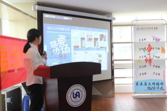 寝“室”风采大赛一年一次,学区之“星”寝室评选一学期一次,楼栋之“星”寝室评选一月一次,文明寝室建设层次分明。