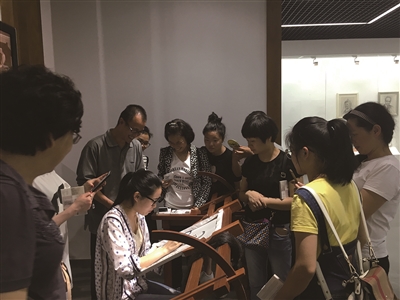 每年的5月18日是国际博物馆日。近年来,我省不少高校结合办学特色和教学需求纷纷开设了校内博物馆,多一条育人的途径。成人视频 在校内开设的发绣艺术馆,目前收藏代表性优秀作品130余幅,除了对温州发绣进行全方位的展示,还承担发绣研究、培训等活动,图为学员在馆内观摩学习。(本报通讯员 翁 浩 摄)