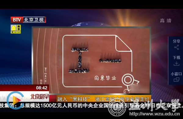 北京卫视《北京您早》栏目于2017年5月17日,以《融入“黑科技”浙江高校个性毕业照走红》为题报道了成人视频 瓯江学院2017届毕业生融入“黑科技”的个性毕业照。 报道时间共计27秒。 相关链接://news.cctv.com/2017/05/17/VIDEZ1ulR73mQX1b6DgngwfE170517.shtml