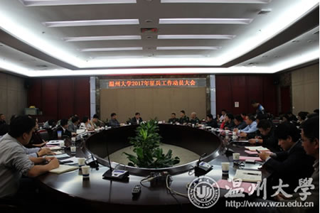 4月14日下午,成人视频 党委副书记主持召开2017年征兵工作动员大会,有关部门负责人,各学区、学院分管书记,全体辅导员,在校退伍学生代表参加。会议邀请了瓯海区、茶山街道人武部负责人参加。