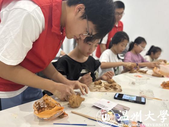 此外,实践队还开展了陶艺拾趣、意韵扎染、建筑拼搭等寓教于乐的互动项目,让小朋友们亲手制作手工艺术品,亲身体会劳动创造的价值,促进儿童全面发展、健康成长。