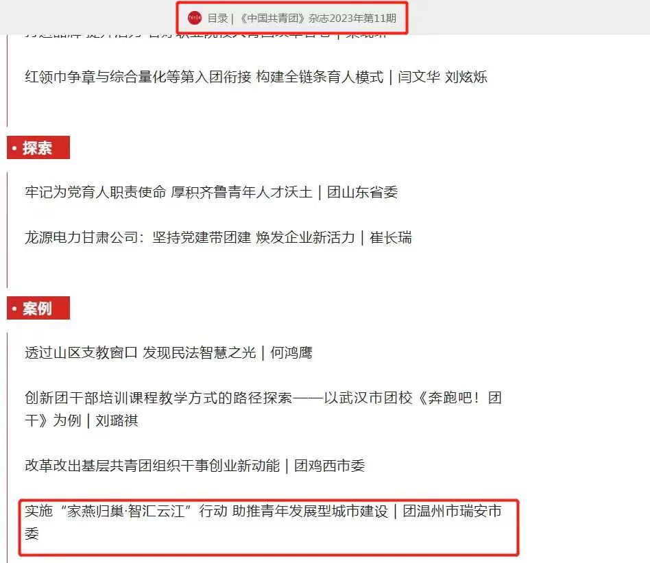 相关链接:共青团改革 | 温州瑞安市:“六三四”工作法,畅通青年干部“选育管用”成长体系 (qq.com)