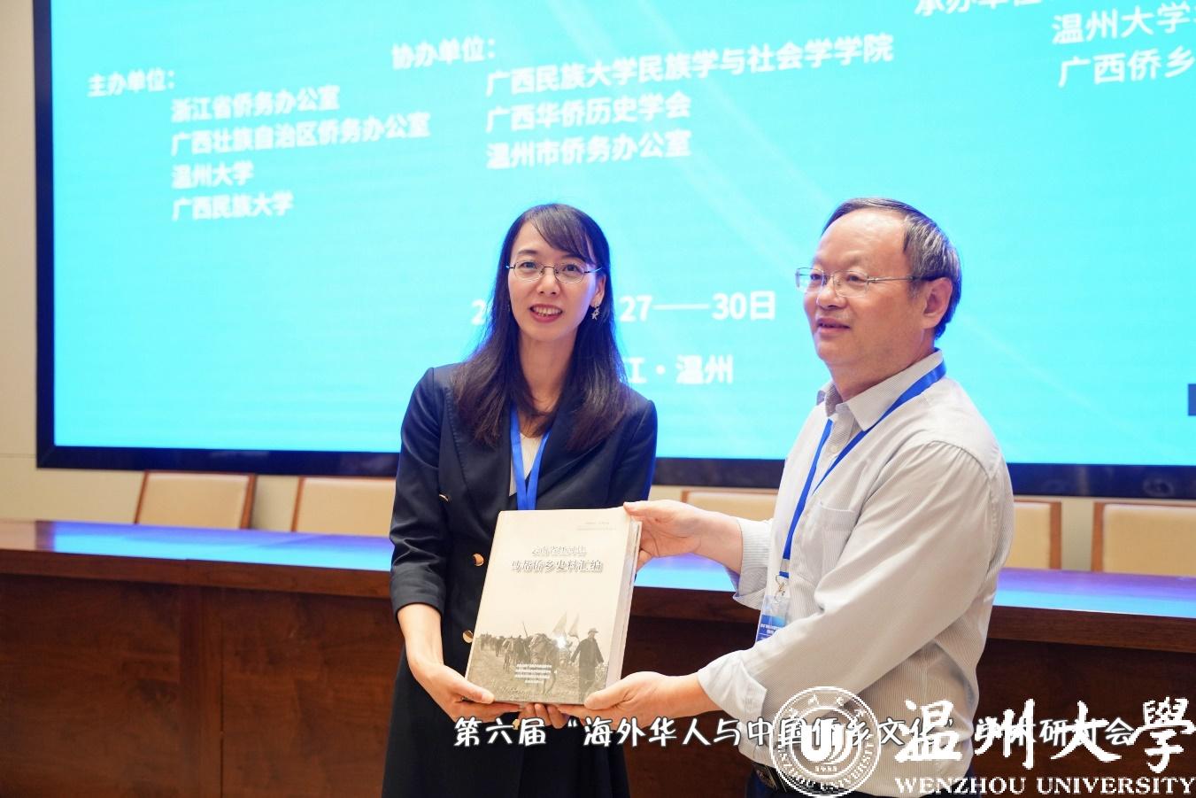 红河学院/云南侨乡文化研究中心主任何作庆教授向成人视频 华侨学院赠送最新研究成果。