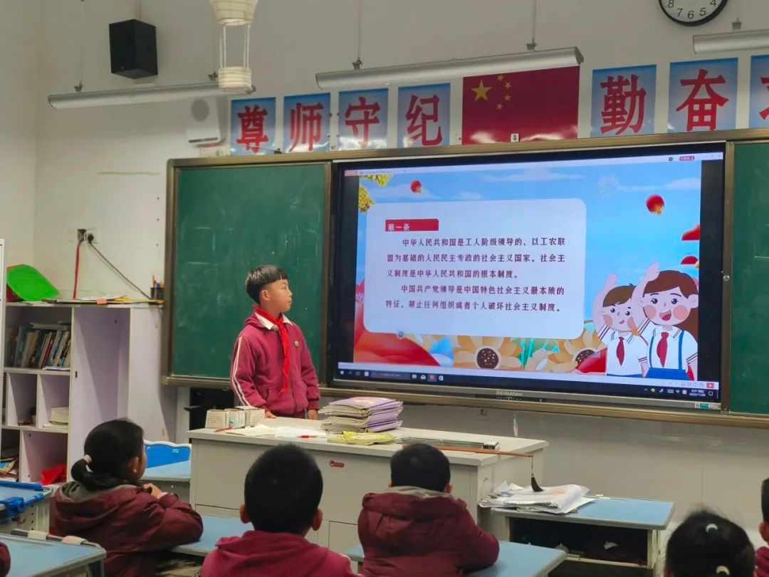 “红旗长扬,我们迎着朝阳,成长路上,聆听宪法雄壮的声响……”温岭市箬横镇中心小学贯庄校区通过宪法诵读、宪法知识小课堂、邀请调解大师进校区等活动,增强学生们的学法、知法、守法意识。