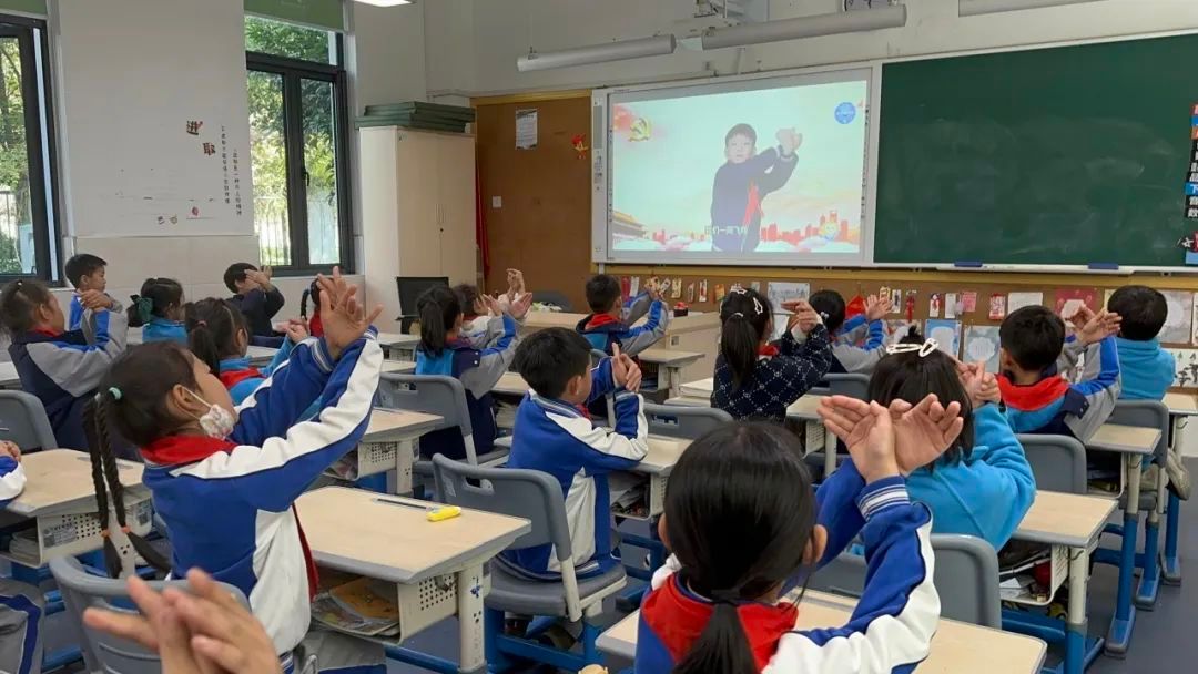 杭州市笕桥花园小学编排了《宪法伴我成长》手势操。