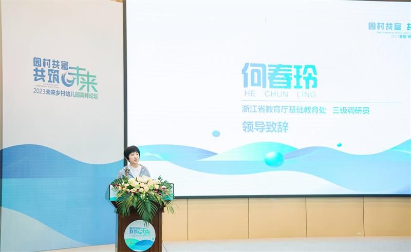 何春玲副处长为本次活动致辞。她指出,学前教育作为重要的民生工程,浙江省坚持一手抓资源建设,一手抓内部发展。在教育事业快速发展的同时,实施学前教育城乡一体化,不断提升农村幼儿园保教质量,全面推进未来乡村标准建设,促进乡村振兴。未来将继续围绕着乡村学前教育可持续发展和儿童未来发展的需要,重构乡村幼儿园要素,期待未来乡村园成为新时代乡村学前教育的样本。