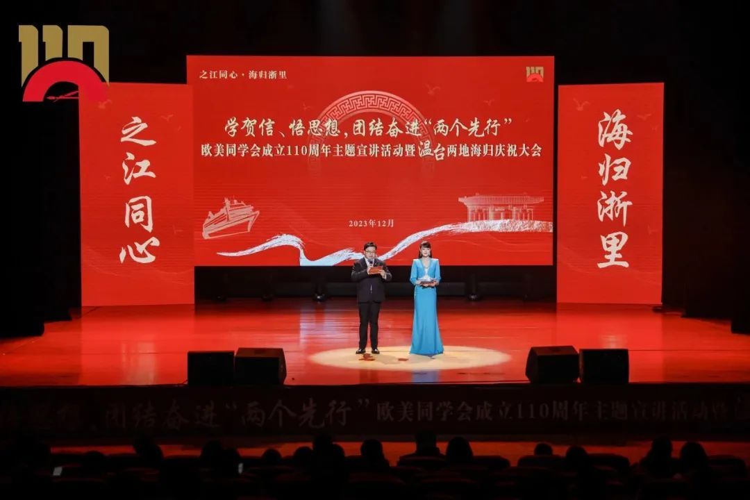为学习贯彻习近平总书记致欧美同学会成立110周年贺信精神,激励广大温州、台州归国留学人员坚定信心信念,激发前进动力。12月9日,“之江同心·海归浙里”学贺信、悟思想,团结奋进“两个先行”欧美同学会成立110周年主题宣讲暨温台两地海归庆祝大会在成人视频 成功举行,该活动由浙江省欧美同学会指导,中共温州市委统战部、中共台州市委统战部主办,温州市欧美同学会、温州市留学人员和家属联谊会、台州市欧美同学会 (留学人员联谊会 )承办。