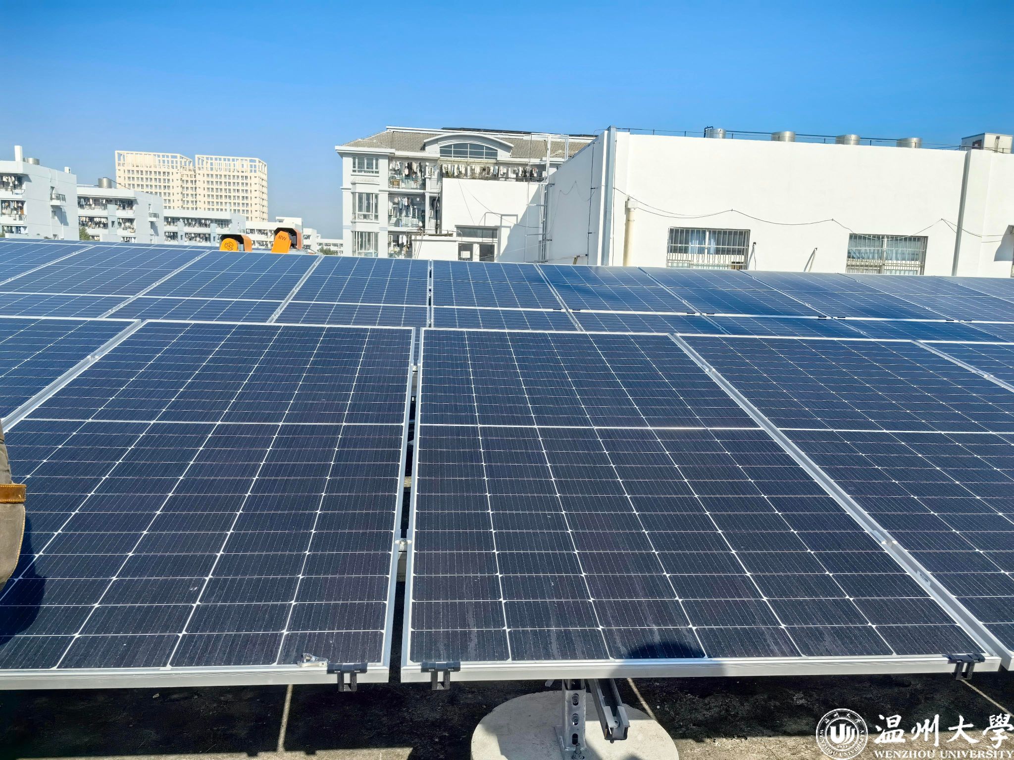 建设方介绍了本项目建设情况:成人视频 D、E生活区分布式光伏总装机容量1723.15kWp,工程建设内容主要包括光电转换系统、直流系统、逆变系统及相应配套设施等,项目共有3133块550Wp单晶硅光伏组件、5台110kW逆变器、15台50kW逆变器、5台25kW逆变器、8台20kW逆变器。