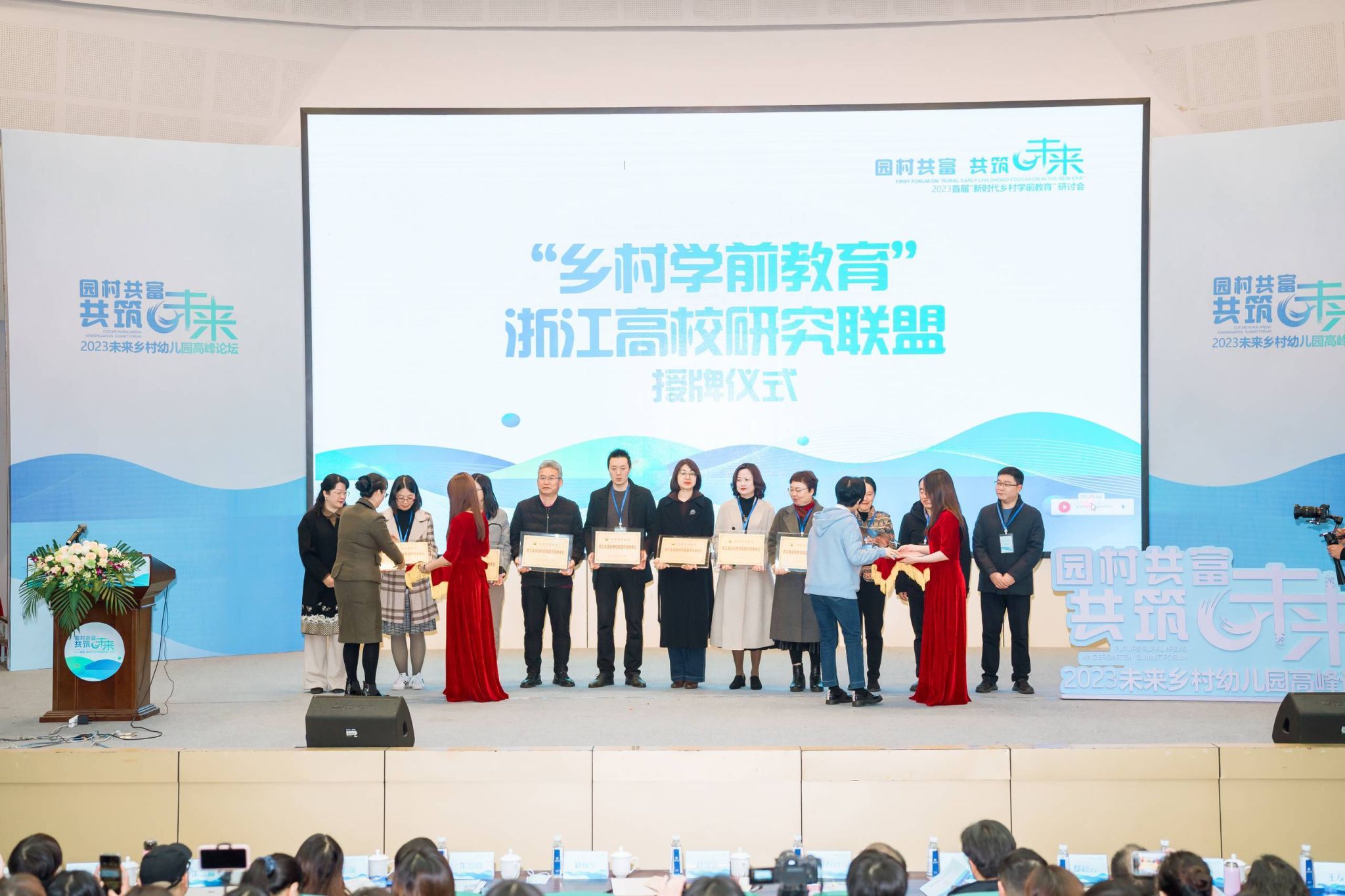 研讨会现场,成人视频 作为召集单位,联合浙江师范大学、杭州师范大学、宁波大学等12所浙江高校共同组成乡村学前教育浙江高校研究联盟。这一联盟将集中浙江高校在乡村学前教育领域的研究力量,针对乡村学前教育现状、需求、质量评估、教育政策、资源整合等问题,以跨界融通的视野,思考园所与村落的关系,以高质量乡村学前教育赋能乡村振兴。