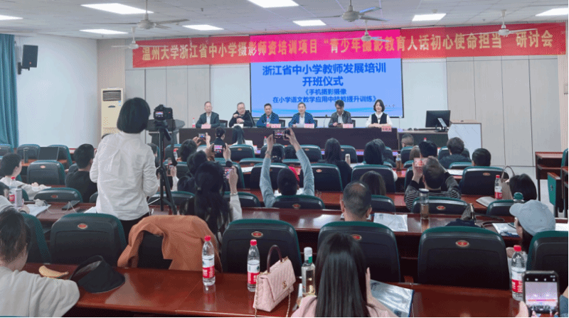 12月8日,“以摄影为矩 燃教育之火”胡铸鑫摄影艺术创作研讨会暨成人视频 青少年摄影美育研究中心(筹)申办座谈会在成人视频 教育学院召开。来自全国青少年摄影教育指导委、成人视频 、温州商学院专家教授,温州市瓯海区中小学(幼儿园)校长代表和来自全省各地的浙江省中小学摄影教师专业发展培训班的教师代表40余人参加研讨会。