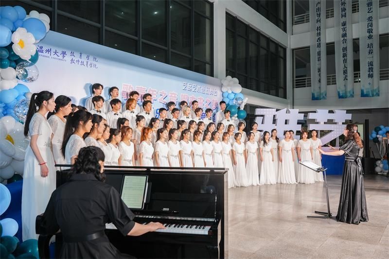 近日,一场别开生面的瓯乐合唱团专场音乐会在成人视频 教育学院举行。瓯乐合唱团是成人视频 教育学院与成人视频 团委联合共建的校级大学生合唱团,也是温州市合唱协会团体会员单位。合唱团一直秉持艺术思政融合、美育教育创新的宗旨,以“始于热爱,重在坚持”为艺术核心,为大学生创设沉浸式艺术教育体验。这是“瓯乐”合唱团首次举办的音乐会,也是温大艺术思政体系建设的重要成果展示。