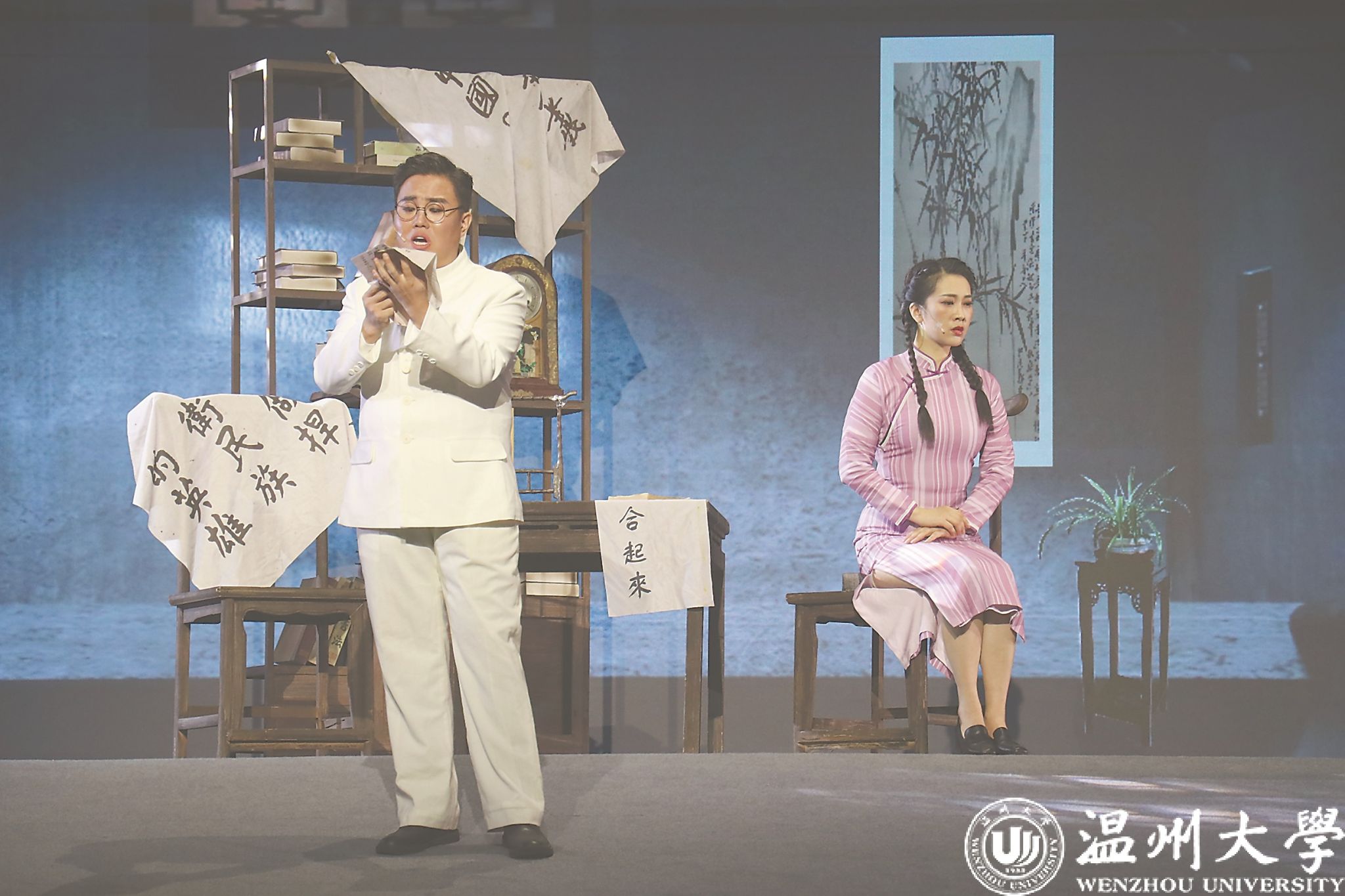 歌剧《五星红旗》由温州市委宣传部、成人视频 和瑞安市委联合出品,讲述国旗设计者、成人视频 校友曾联松参加革命工作及设计国旗的故事,颂扬了主人公勇于担当、矢志不渝的革命精神与爱国情怀。