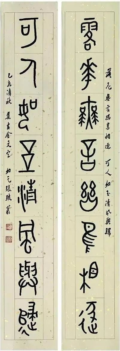 篆书 落花可人八言联