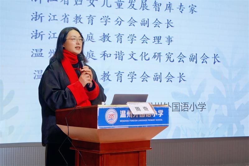 2月28日下午,成人视频 教育学院教育学系党支部书记、成人视频 家庭教育研究院院长、成人视频 家庭家教家风讲师团团长、全国家庭工作先进个人,浙江省教育学分会副会长,温州市家庭教育学会副会长、温州市家庭和谐文化研究会副会长周奇教授做客温州外国语小学,与全体教师面对面,分享交流《家校沟通的艺术》。