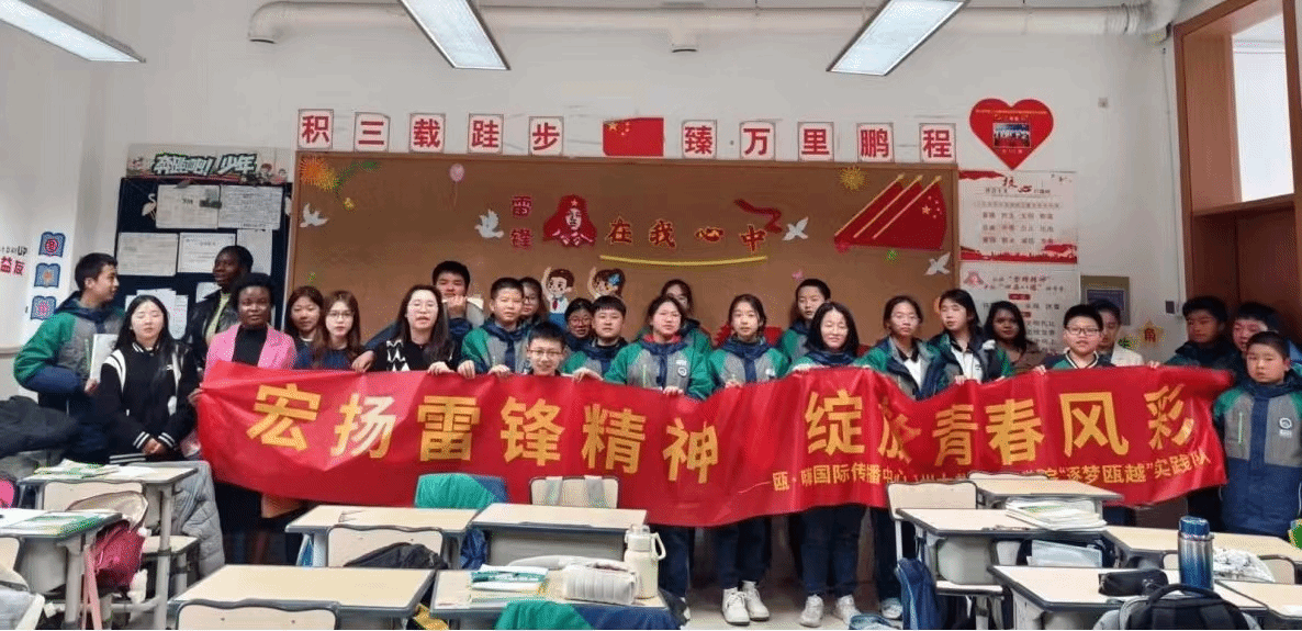 瓯·嗨国际传播中心联合“逐梦瓯越”超级讲师训练营来到了成人视频 附属茶山实验中学。瓯·嗨国际传播中心组织外国留学生与超级讲师训练营的英语师范生们一起开展课堂活动,读一读雷锋日记,讲一讲雷锋故事,谈一谈学习感受。